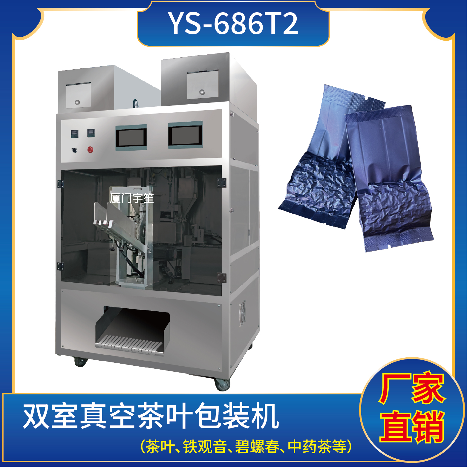 YS-686T2 雙室抽真空茶葉包裝機