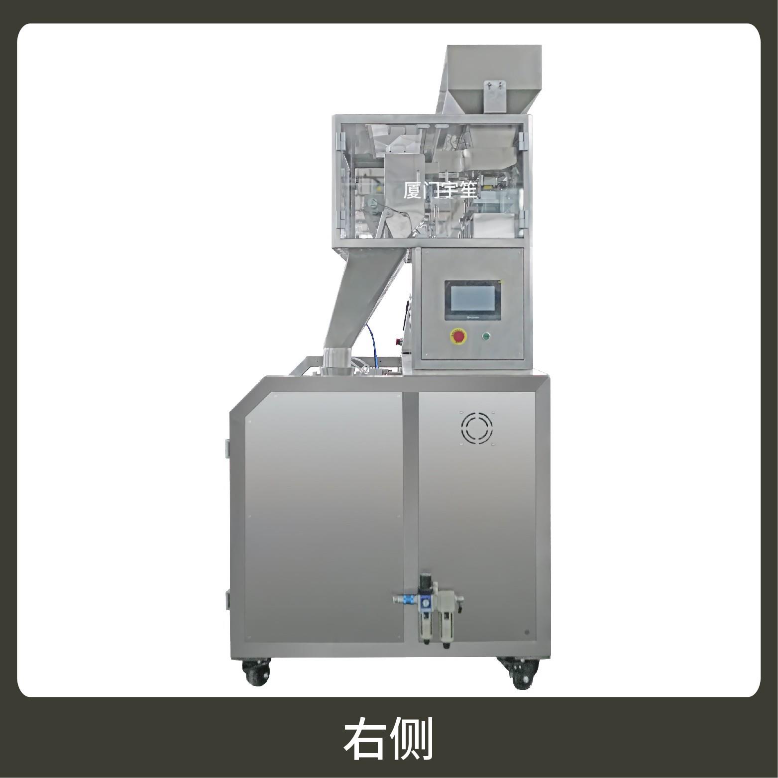 2、用于自封袋、站立袋、拉鏈袋,可抽真空、充氮氣。包裝流程全自動,無需人工操作。可根據(jù)充填物料的性質(zhì)選配不同的下料結(jié)構(gòu),且可根據(jù)客戶要求配置打印批號等功能。